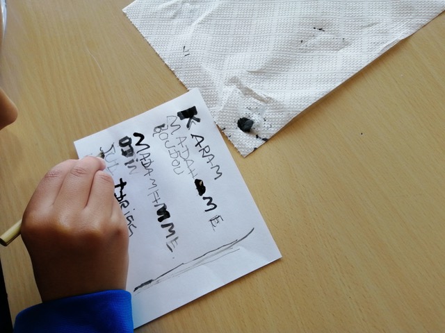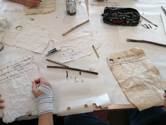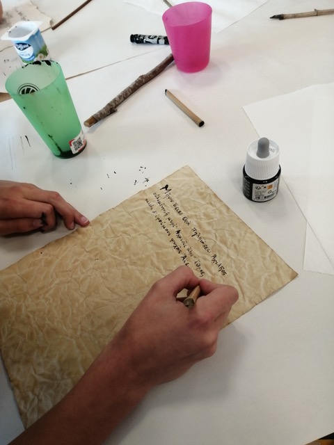 Vendredi 17 octobre, l'Odyssée d'Homère a été recopiée en salle 16 par des élèves maniant le calame et l'encre. C'était difficile mais tellement beau