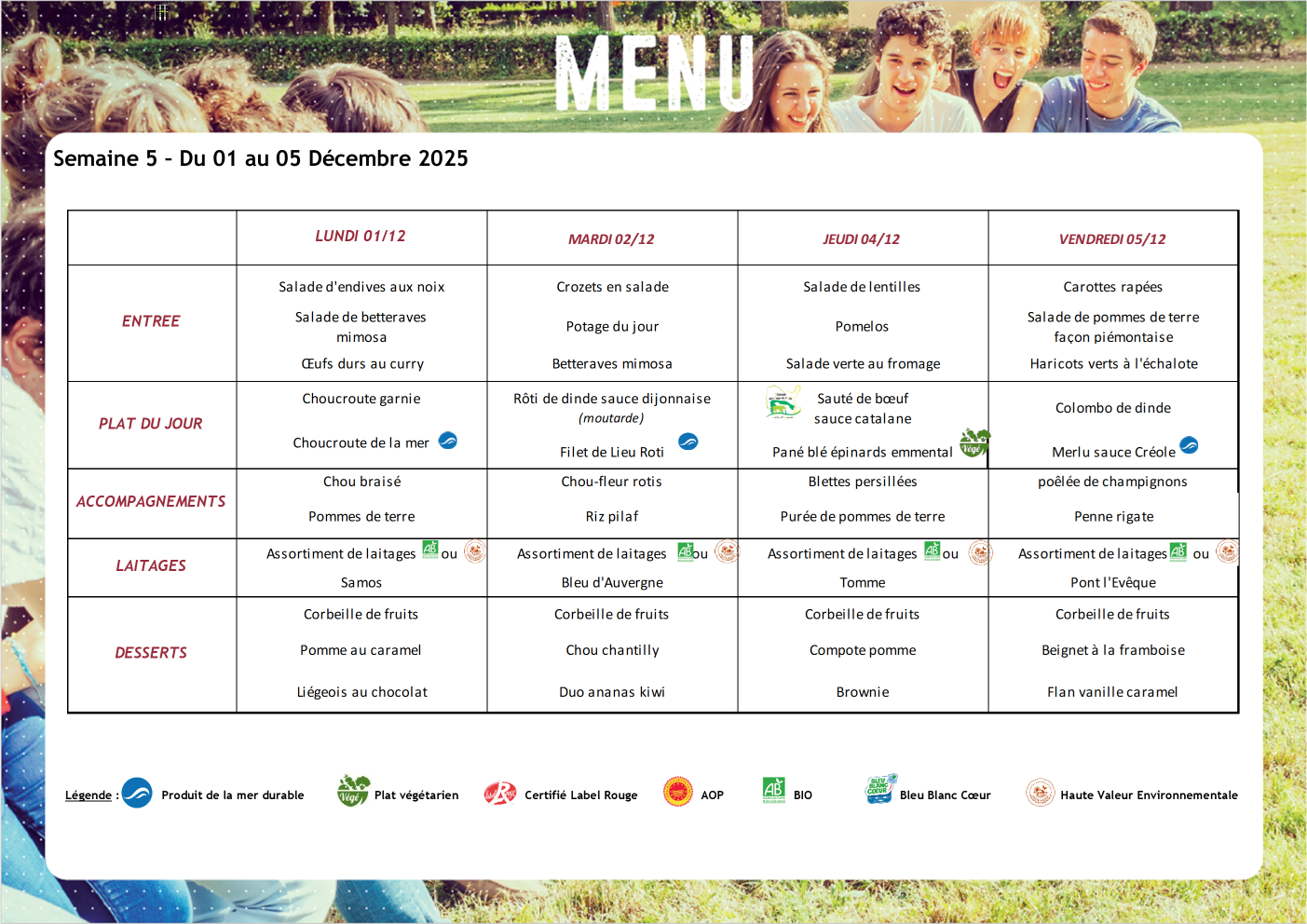 MENU DU 01/12/2025 AU 19/12/2025 !!!