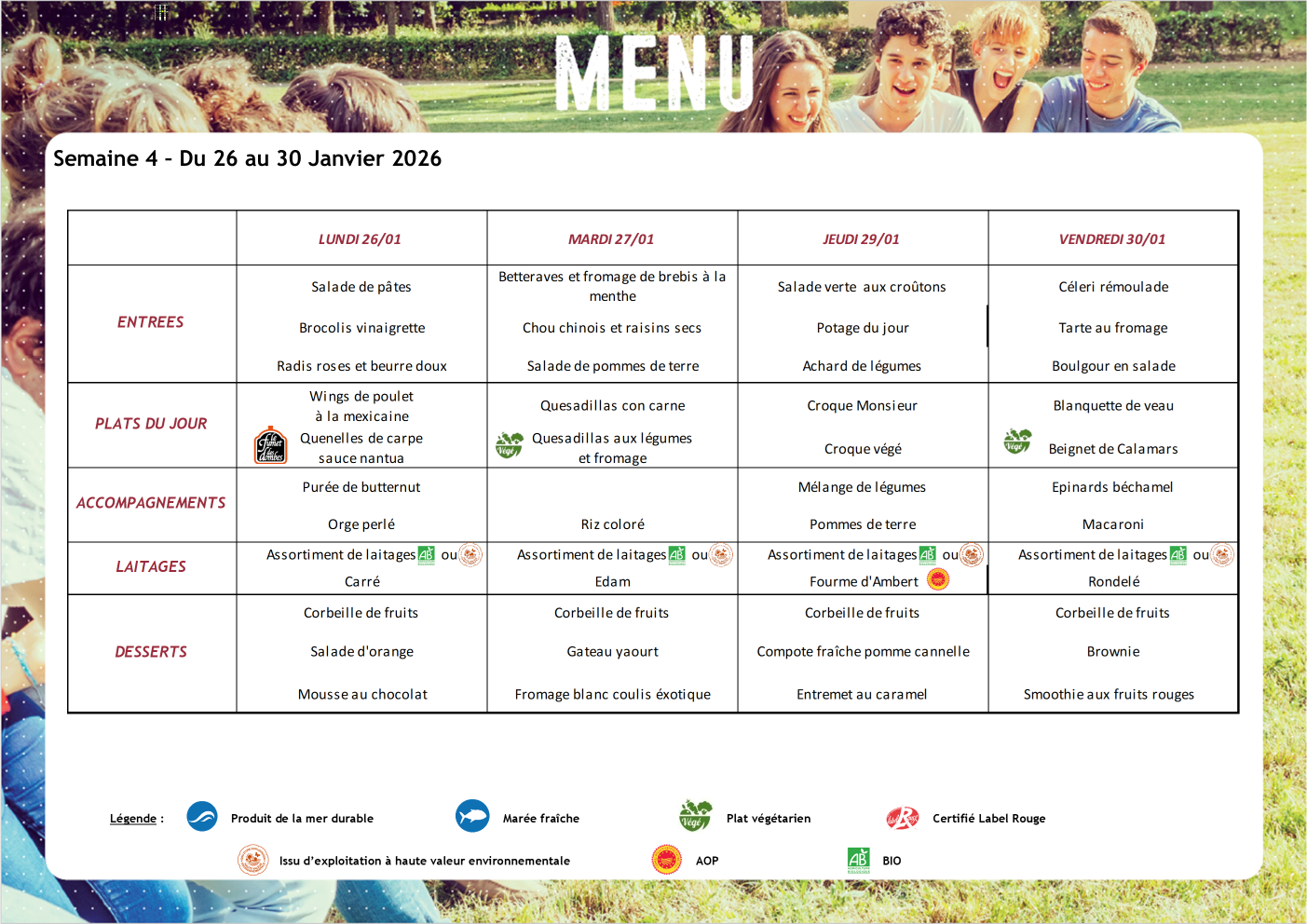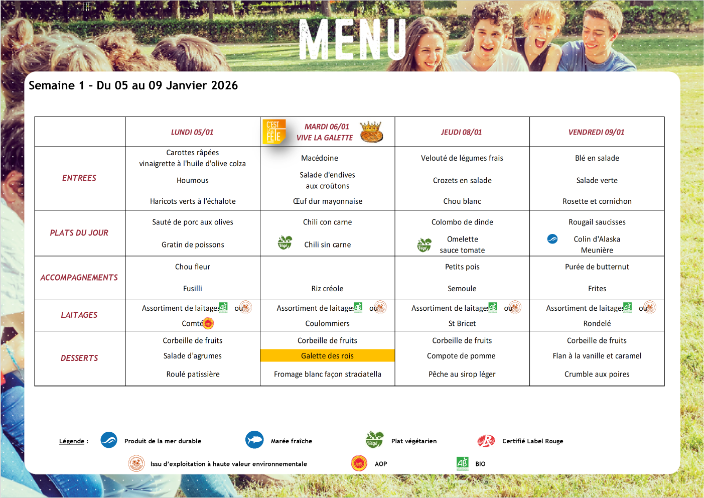 MENU DU 05/01/2026 AU 30/01/2026 !!!