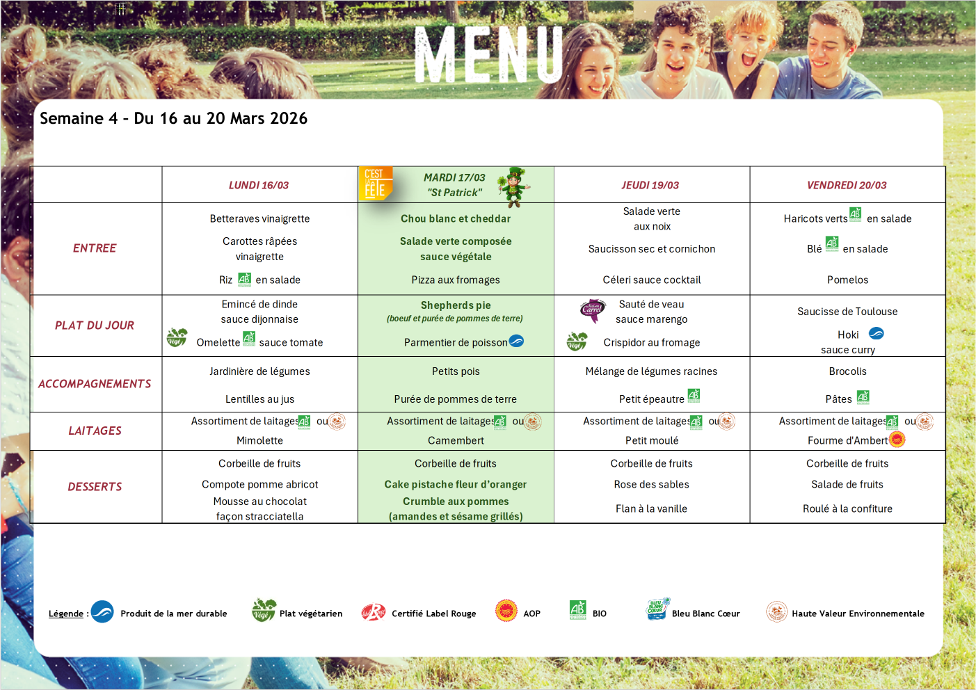 MENU DU 09/03/2026 AU 20/03/2026 !!!